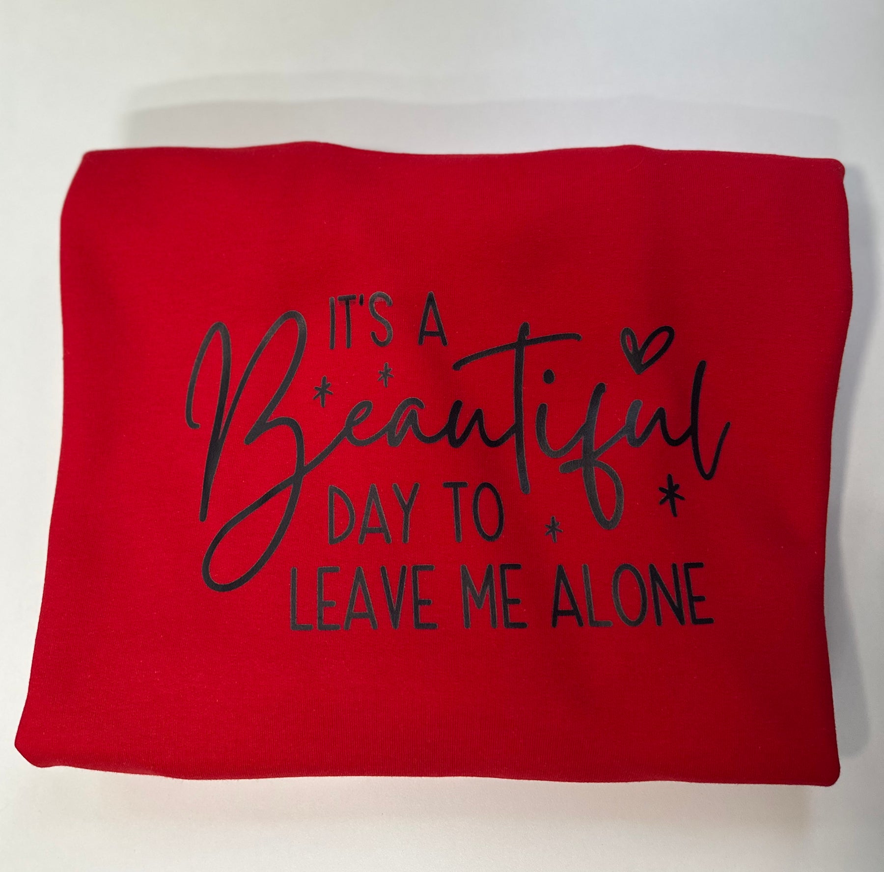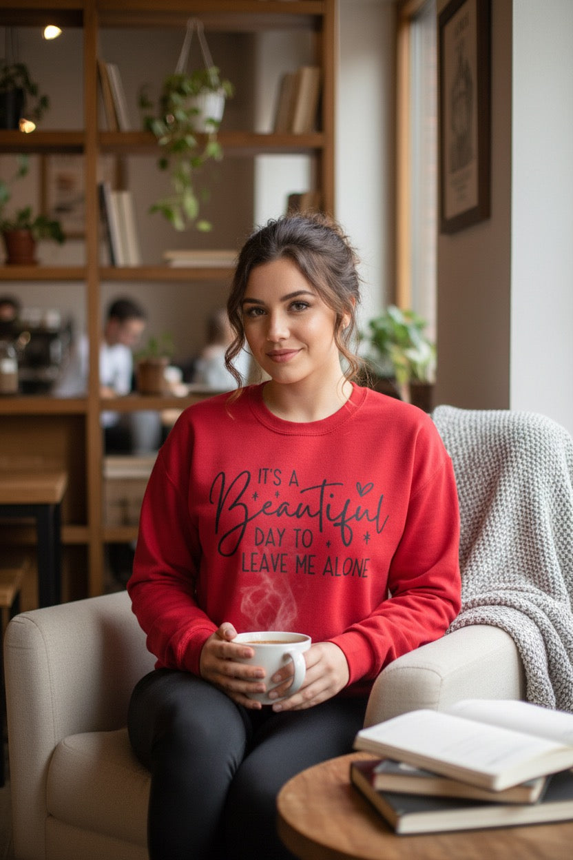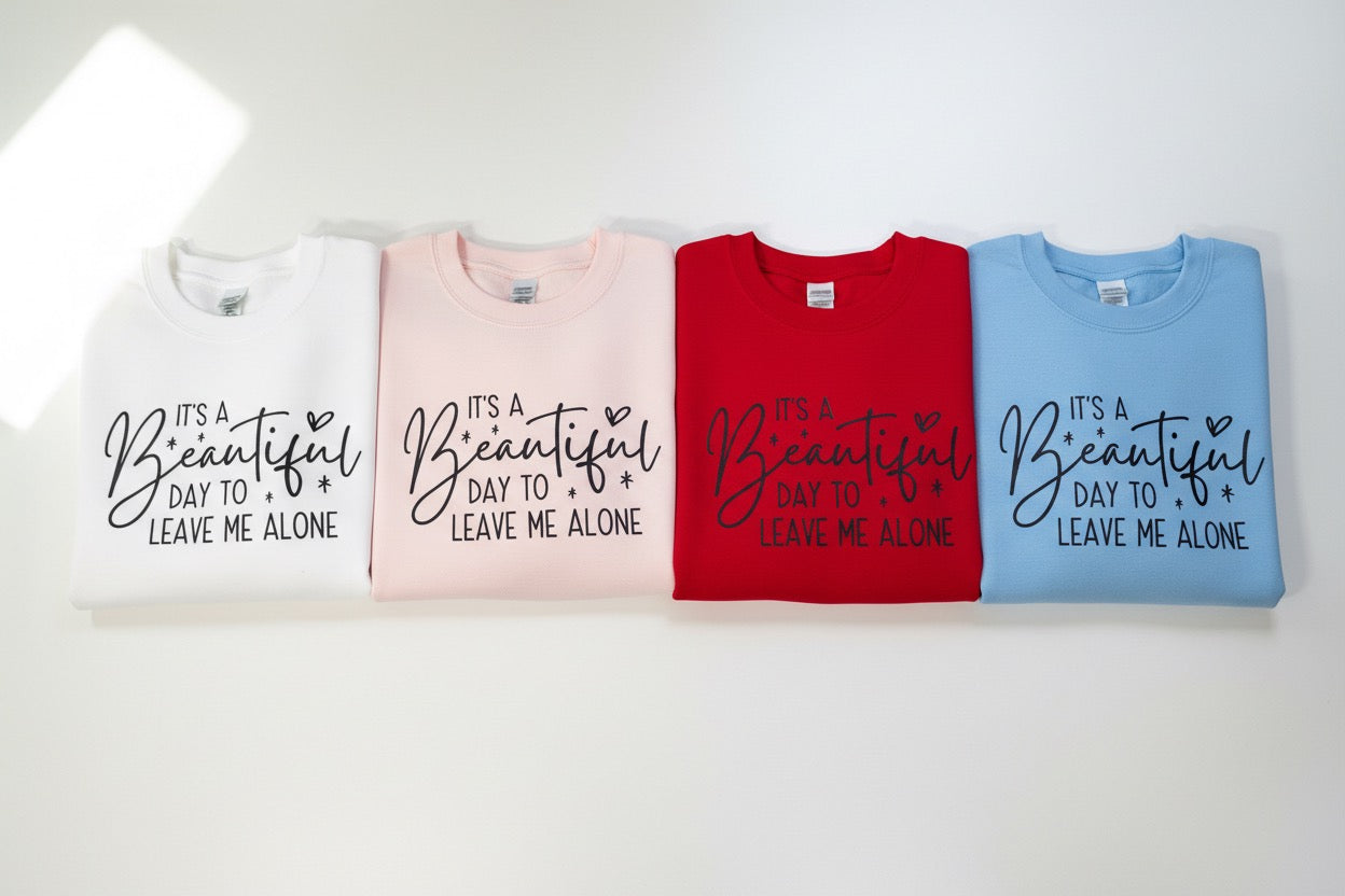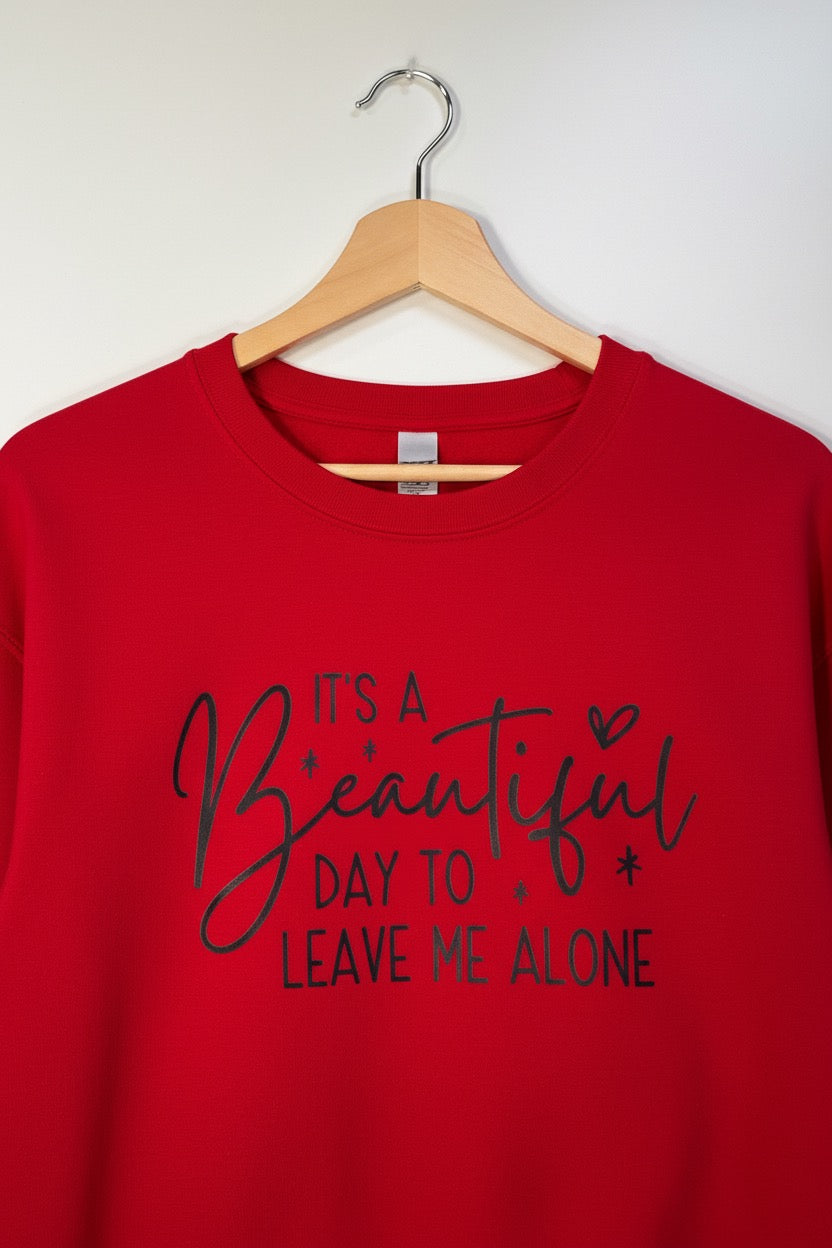 Rock your mood with our It's a Beautiful Day to Leave Me Alone Sweatshirt. This cotton-poly blend strikes the perfect balance between comfort and attitude, featuring a relaxed fit that's ideal for those days when you want to look effortlessly cool while keeping the world at arm's length. Soft, durable, and unapologetically honest—the perfect gift for anyone with a sense of humor and a love of cozy style