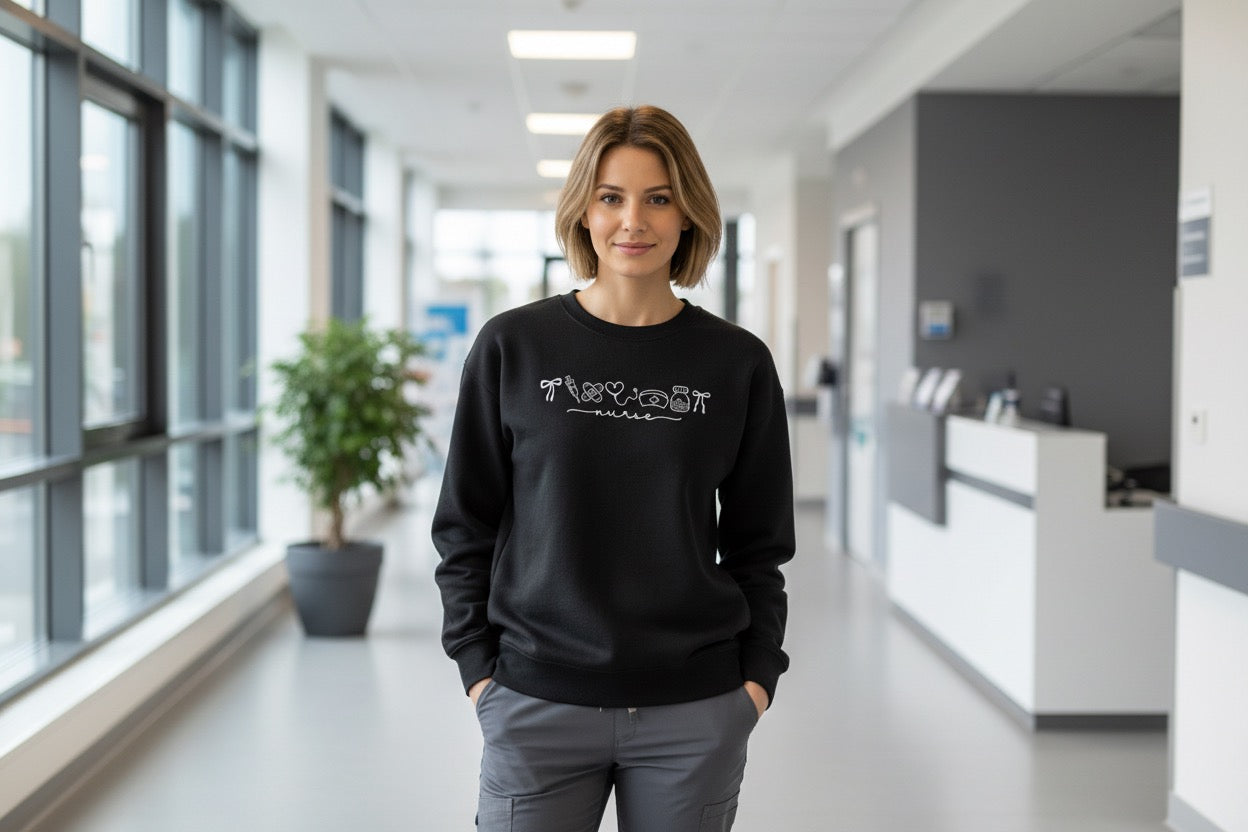 For the ones who show up, care deeply, and give everything they have—this one's for you. The Nurse Sweatshirt is a cozy tribute to the heart, hustle, and humanity that defines nursing. Whether you're clocking in for a 12-hour shift or finally clocking out, this sweatshirt wraps you in the comfort you deserve.