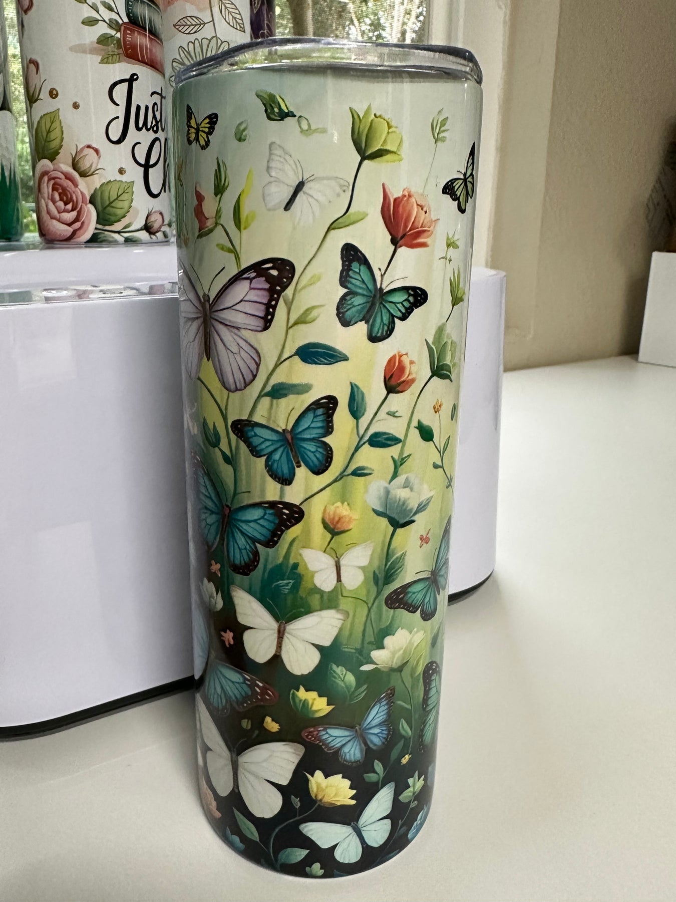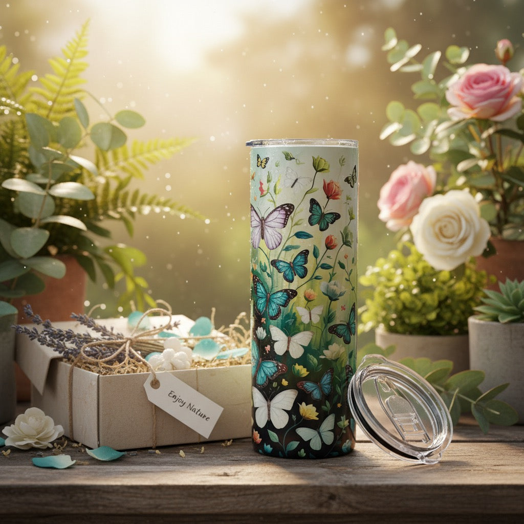 Built for performance and style, this 20oz stainless steel tumbler features premium double-wall insulation that keeps beverages at the ideal temperature for hours. The elegant butterfly motif adds a sophisticated touch to your daily routine, whether at the office, gym, or on the go. Hand-wash to maintain the design integrity. A thoughtfully crafted essential for discerning users.