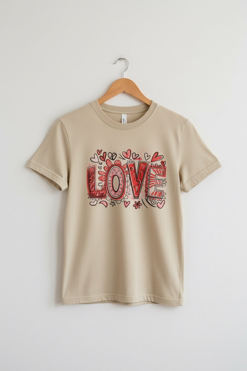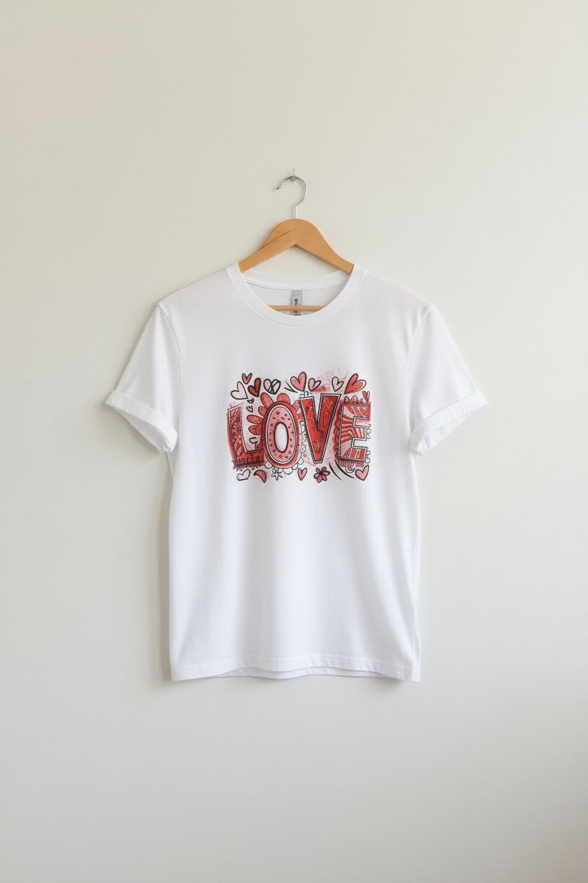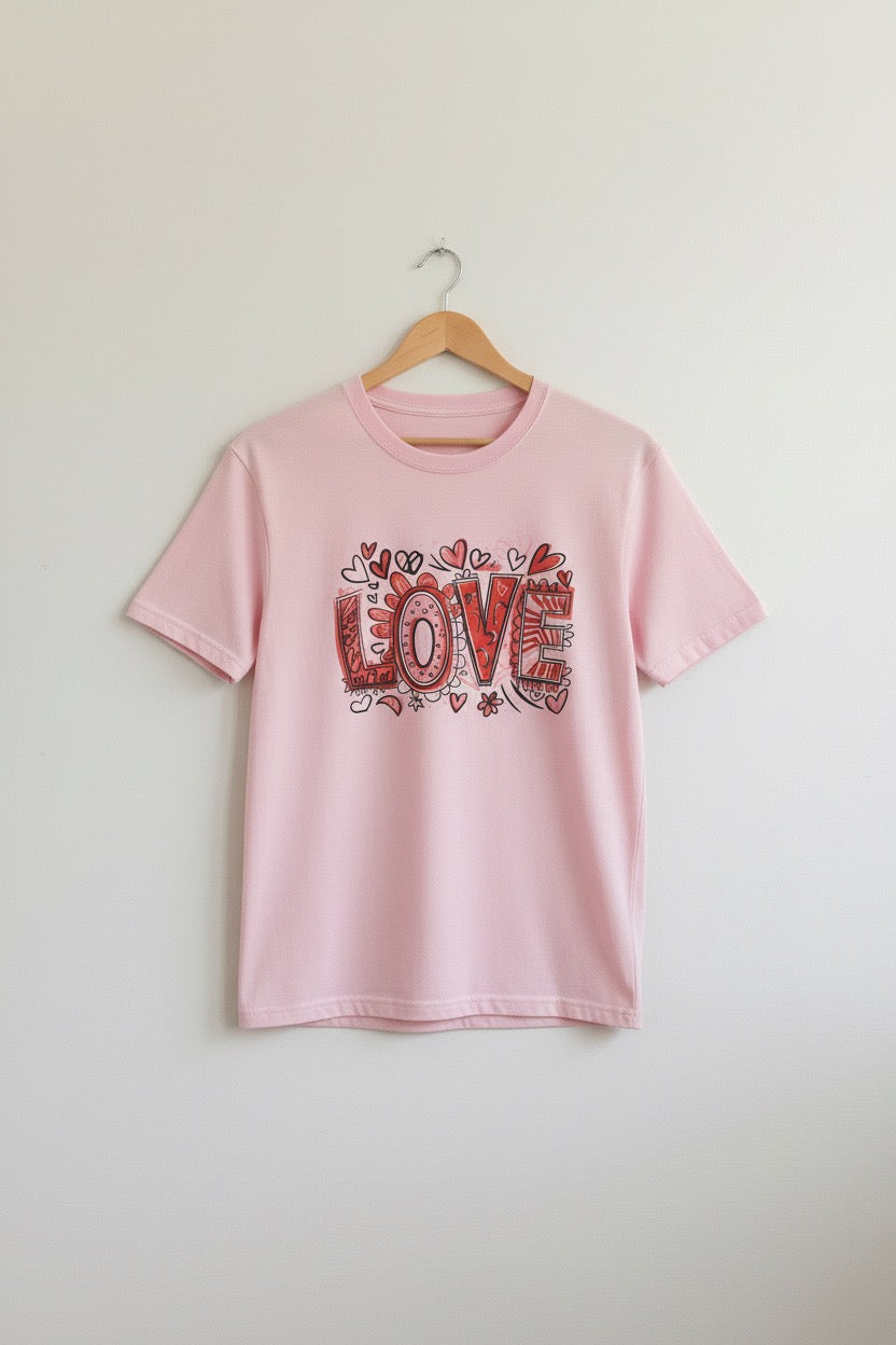 Show your love in style with our Love T-Shirt. Made from soft, breathable cotton, this tee is perfect for everyday wear and warmer weather. The playful design celebrates love with a touch of charm, making it an ideal gift for your favorite person—or a treat for yourself. Whether you're running errands, meeting friends, or enjoying a casual day out, this t-shirt pairs effortlessly with jeans, shorts, or skirts and brings heartfelt style to any outfit.