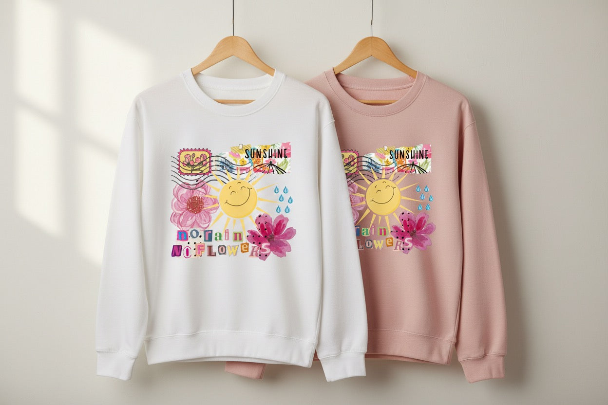Chase away the clouds with our Sunshine Sweatshirt—a cozy reminder that no rain lasts forever. Featuring a vibrant collage of sunshine motifs and uplifting imagery, this premium crewneck is designed to wrap you in warmth and optimism, no matter the weather.